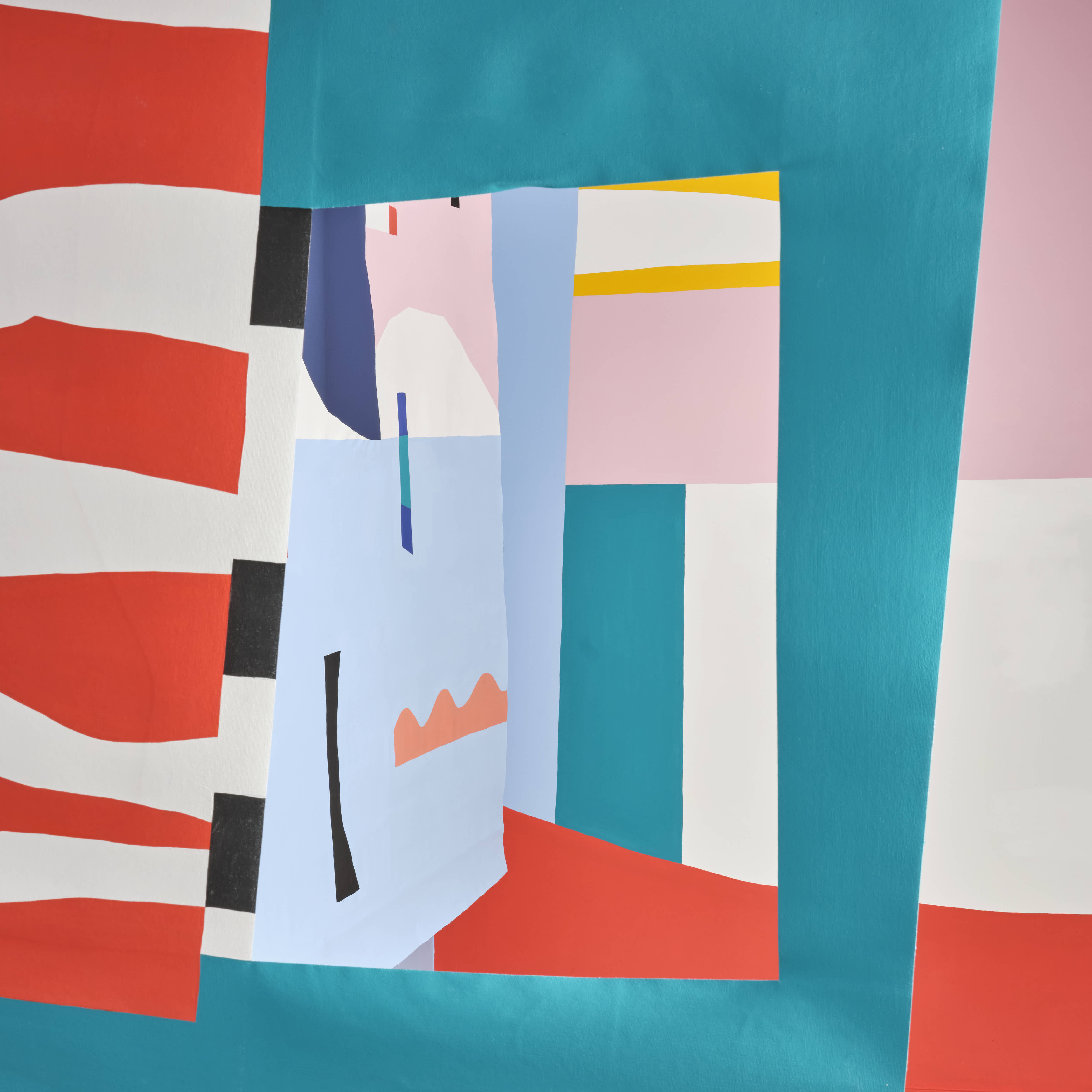 L’installation, entre peintures suspendues et peinture murale, joue avec les différentes surfaces verticales. Le mur n'est plus là pour séparer. Assembler, déplacer, recomposer... En manipulant les aplats de couleur, l'installation nous invite à regarder à travers, mettre en regard des espaces distincts, changer de perspective ou modifier nos points de vue - que ce soit sur l'espace intérieur ou l'espace de la ville.